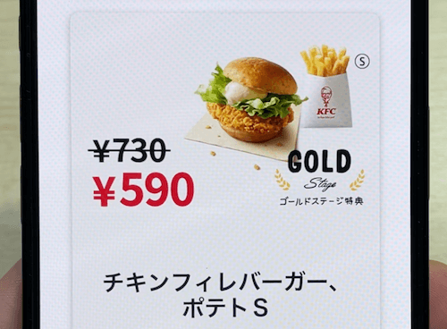 ケンタッキーフライドチキンの公式アプリでは、購入金額や来店に応じて「チキンマイル」が貯まり、ステージに応じたお得なクーポンがもらえる仕組みがあります。